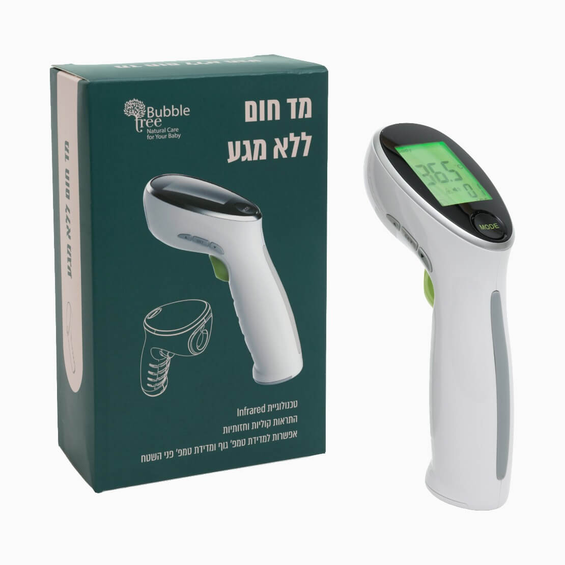 בדיוק בשביל זה, מד החום ללא מגע של Bubble Tree תוכנן כך שתוכלו לבדוק חום ממרחק של כ-1 ס"מ, בלי לגעת במצח ובלי להסתכן בבכי באמצע הלילה. פשוט מכוונים, לוחצים, וחוזרים לישון.