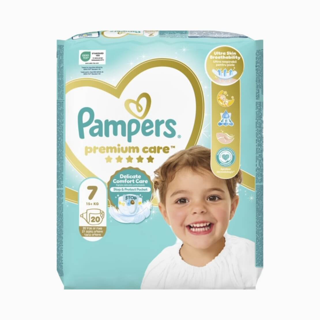 חיתולי פמפרס שלב 7, הגנה מושלמת ונוחות מירבית לתינוקות ולפעוטות הגדולים. סופגים במהירות, שומרים על עור יבש ונעים לאורך כל היום והלילה, עם התאמה גמישה שמאפשרת חופש תנועה מלא.
